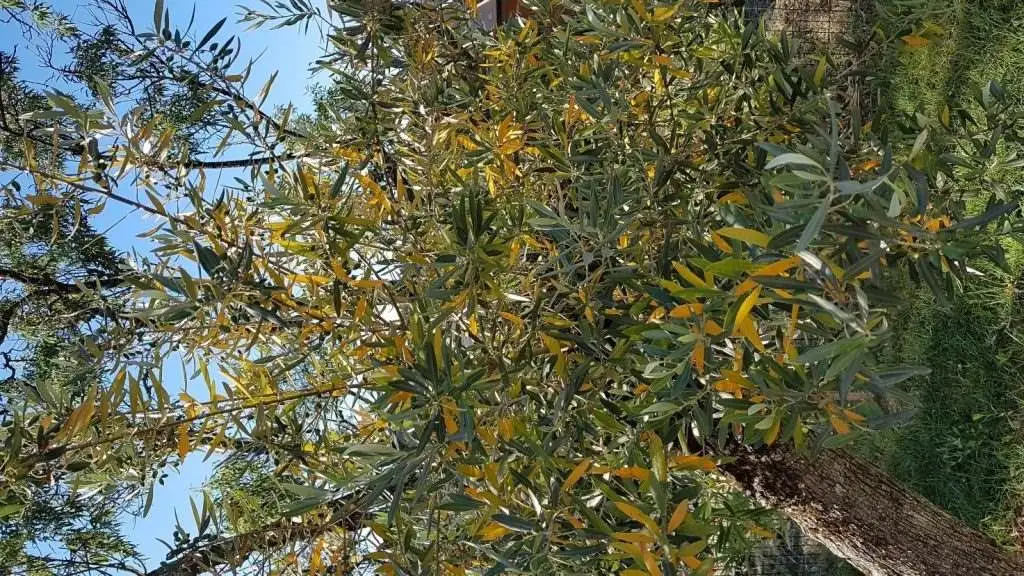Negli oliveti osservati si rileva la comparsa di ingiallimenti fogliari, in alcuni casi concentrati sugli apici vegetativi. Si ipotizza che tale fenomeno possa essere influenzato da specifiche condizioni ambientali o da squilibri fisiologici della pianta, come carenze nutrizionali, che potrebbero aver reso i tessuti più suscettibili a infezioni fungine.