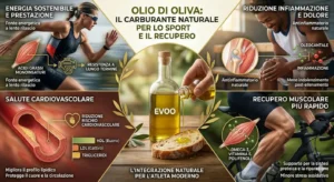 Pertanto, integrare l’olio extravergine di oliva nella dieta quotidiana dell’atleta, all’interno di un modello alimentare equilibrato come la dieta mediterranea, sembra fondamentale per migliorare le prestazioni e la salute a lungo termine.