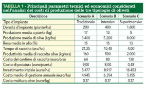 È infatti la combinazione tra densità d’impianto, capacità di meccanizzazione e organizzazione del lavoro a determinare il costo unitario di produzione e, di conseguenza, il grado di competitività dell’azienda. Ecco la tabella pubblicata da Informatore Agrario che analizza puntualmente i parametri tecnici ed economici.