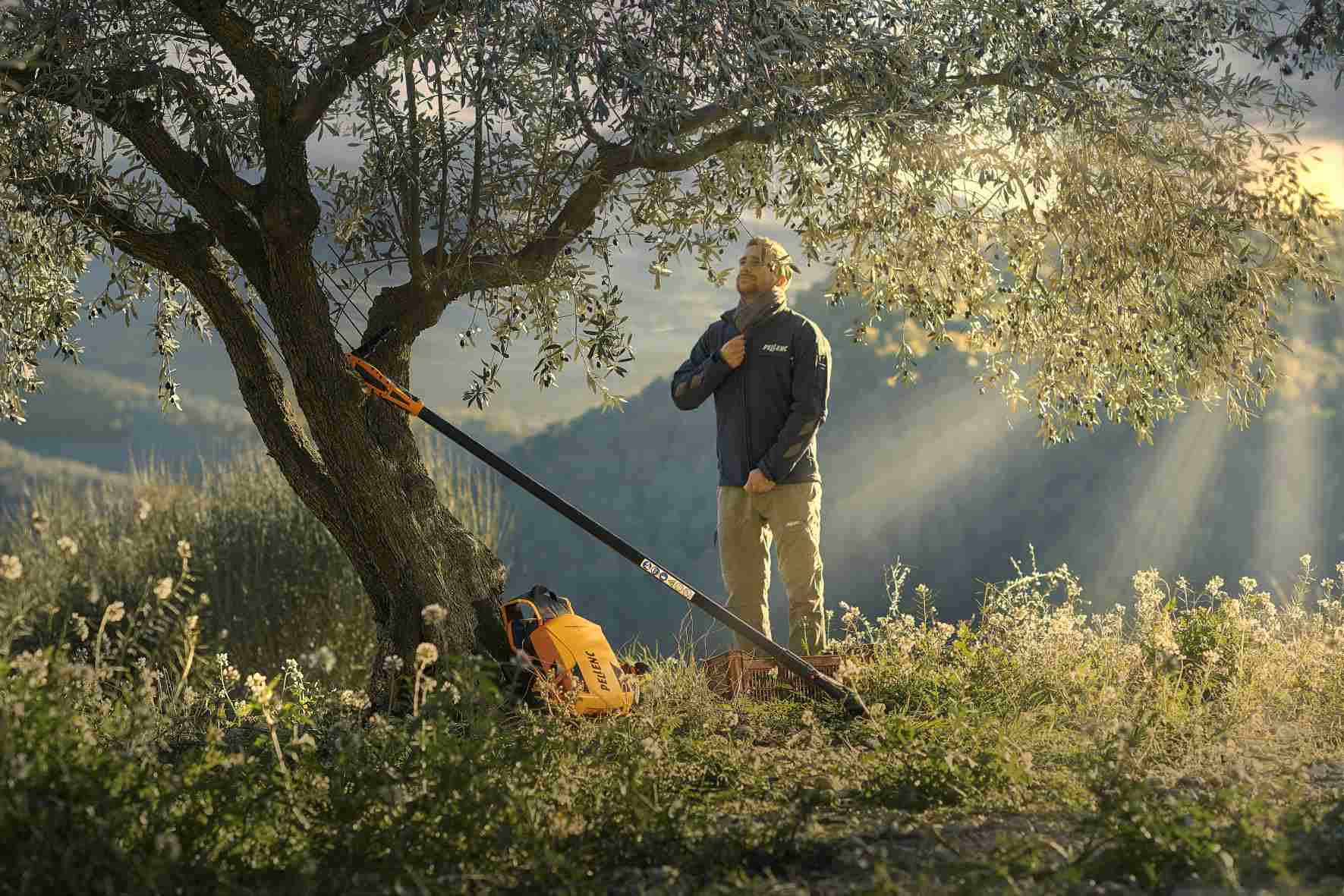Fiore all’occhiello della gamma di attrezzi a batteria Pellenc è, senza dubbio, l’agevolatore di raccolta olive POWER 48, disponibile sul mercato sia nella variante ad asta fissa (P230) che in quella ad asta telescopica (T220/300) con un’estensione fino a 3 metri e ideale anche per le piante più alte.