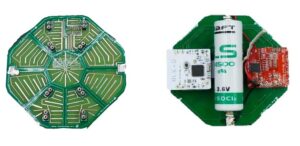 L’energia necessaria per il funzionamento della scheda hardware è fornita da una batteria stilo di tipo AA che permette il funzionamento per un’intera campagna di monitoraggio (circa 120 giorni), inoltre nella parte bassa della scheda hardware è presente un filo metallico che funge da antenna per la connessione alla rete di comunicazione dati.